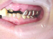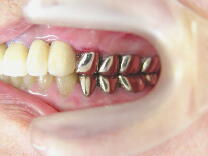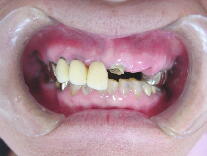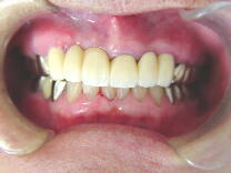 やり直しました。治療期間は患者さんの努力によりかなりの頻度で通院なさ れた結果、約半年で治療後の状態になっています。現在は歯肉の状態維持の ため数ヶ月に一度の割合で通院されています。
