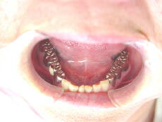 なり、遂には下の前歯部が上の前歯部に突き上げた結果、この様な状態を呈 するようになりました。