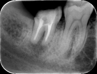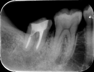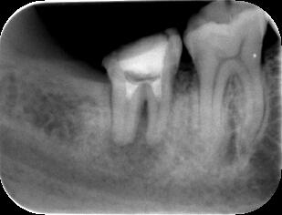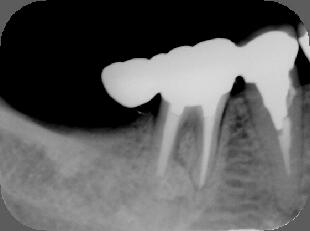 (2)初見では抜歯もしくは遠心根を抜去(ヘミセクション)を考慮しましたが、20代前半で
