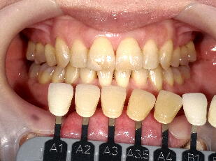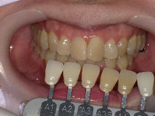 切歯2本は神経のない無髄歯の為、徐々に変色をきたしていました。左右の側切歯は保険